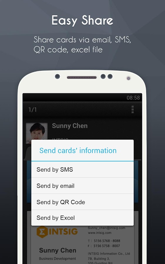 This app is designed for those who are tired of carrying all those numerous business cards in their wallets.